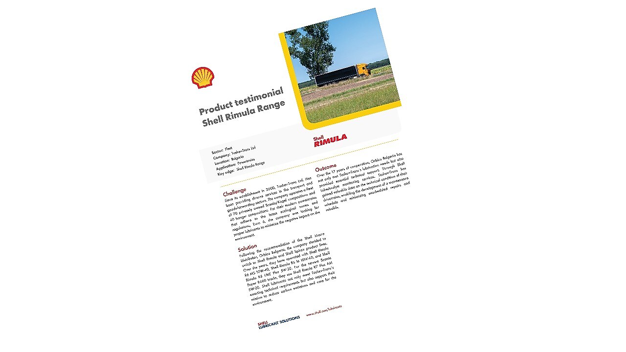 With a modern Euro 6 fleet, Tashev-Trans relies on Shell Rimula and Spirax products to meet strict environmental standards.