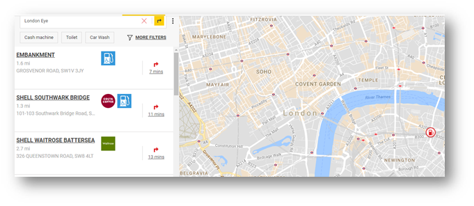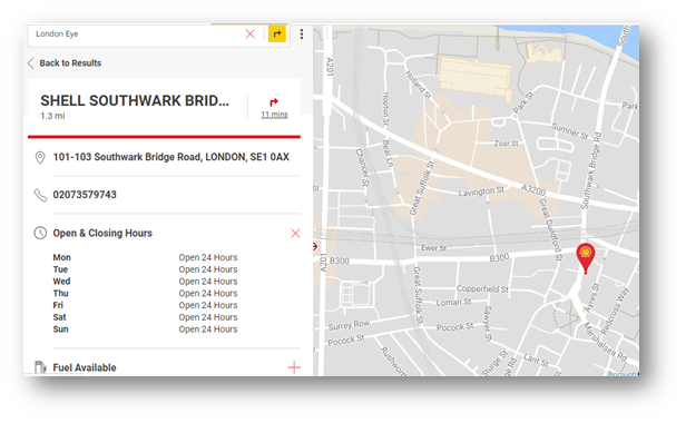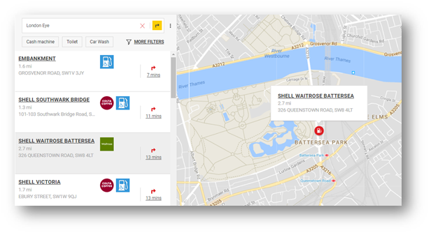 The nearest Shell Service Stations will appear under search on left: