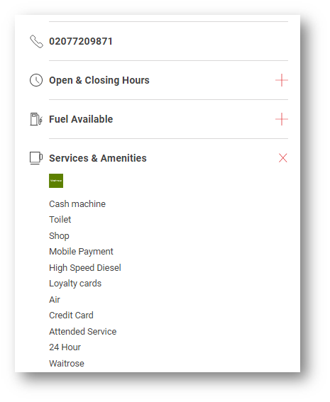 Screenshot below shows list under Services & Amenities