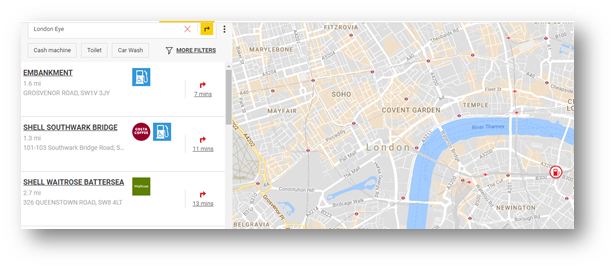 3. Choose filters below the search box for a more specific search – see cash machine, toilet, car wash.